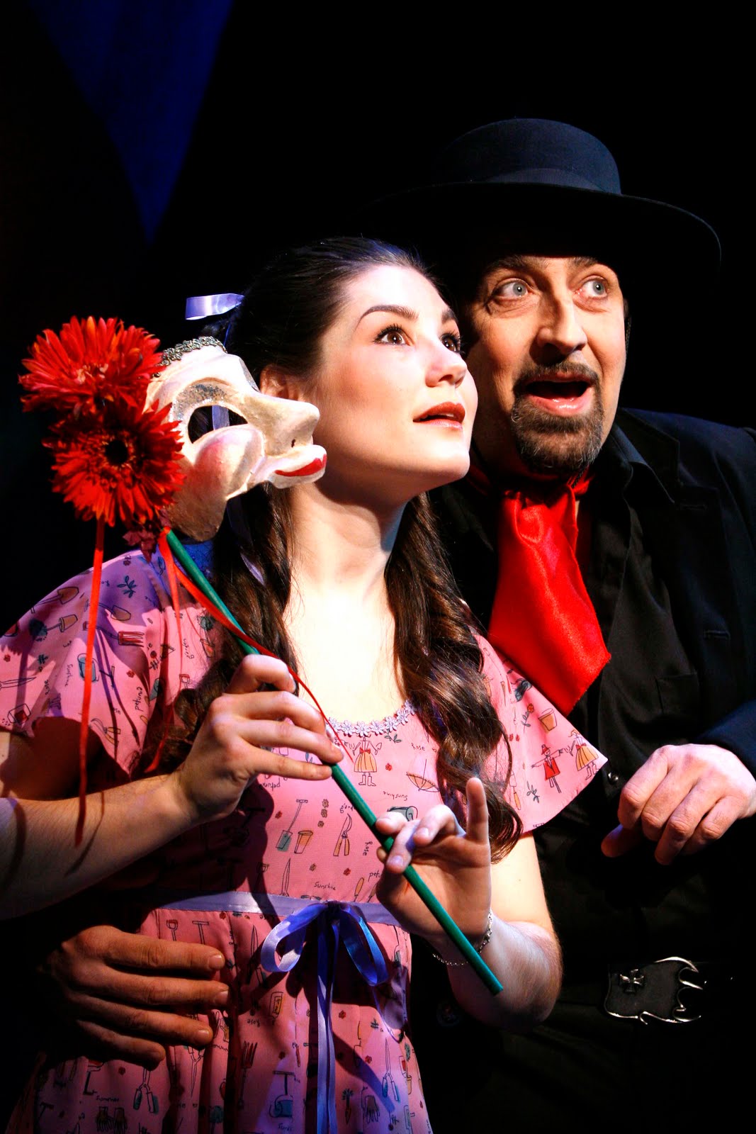 In this particular production the cast does a wonderful job highlighting the humor. The show's scheming fathers, Mark Goetzinger and Charles Goad are excellent. Their comradery and odd couple mannerism feel natural. William Norris and Robert K. Johansen are the local players. They provide some of the shows biggest laughs as they ham up death scenes and butcher famous monologues. El Gallo, played by David Studwell, is the narrator and "villian" in the show. His calm and steady presence lends a sense of solemnity to the show as he sings about celebrating sensation.